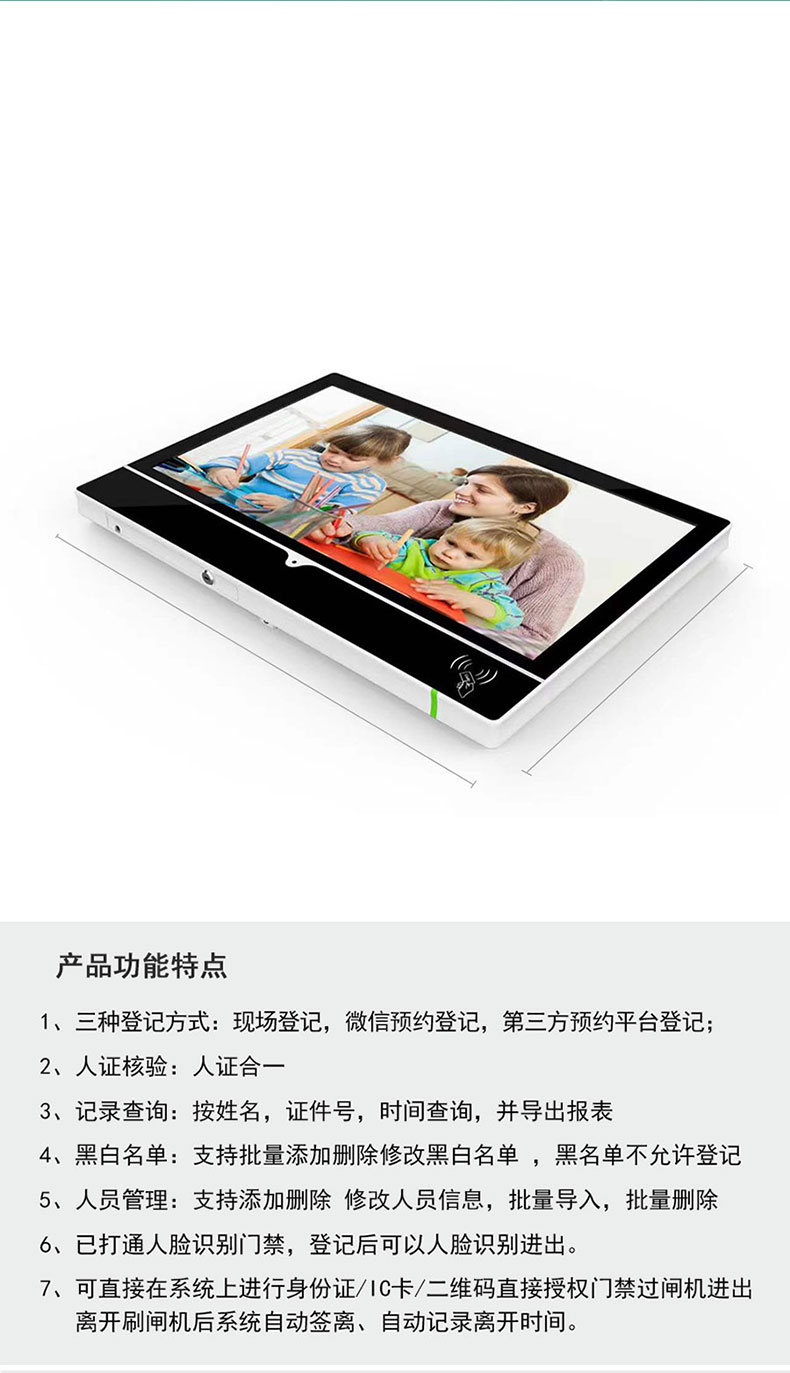 明創立式訪客機可以讀取身份證信息,高清攝像頭實現人證對比,人臉比對,可以打印核驗單,訪客