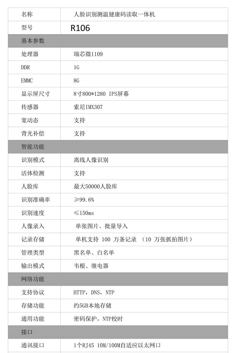 (*由于產(chǎn)品升級(jí)或其他原因,明創(chuàng)IDR-R106健康碼識(shí)別機(jī)產(chǎn)品實(shí)際參數(shù)有可能變更,以實(shí)際產(chǎn)品為準(zhǔn)。本文中的所有陳述、信息和建議也不構(gòu)成任何明示或暗示的擔(dān)保)
