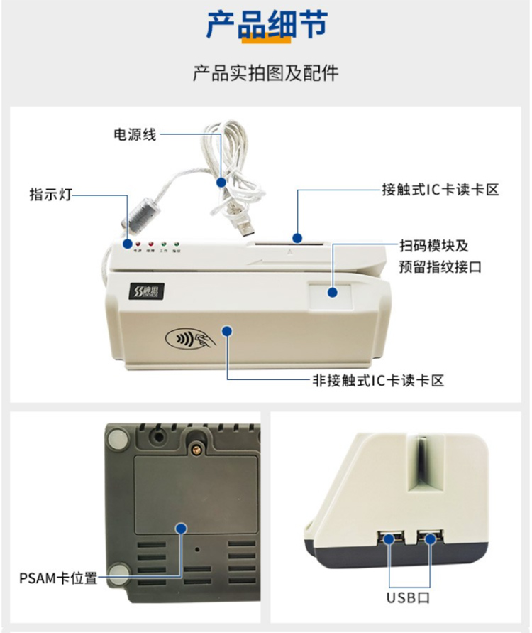 神思SS728-M05P多合一讀卡終端可以讀取身份證信息,社保卡信息,醫保卡信息,ic卡信息,就診卡