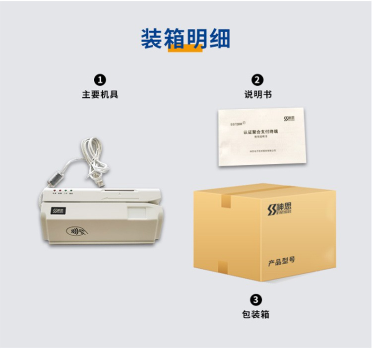 (*由于產品升級或其他原因,神思醫保卡讀卡器SS728-M05P產品實際參數有可能變更,以實際產品為準。本文中的所有陳述、信息和建議也不構成任何明示或暗示的擔保)